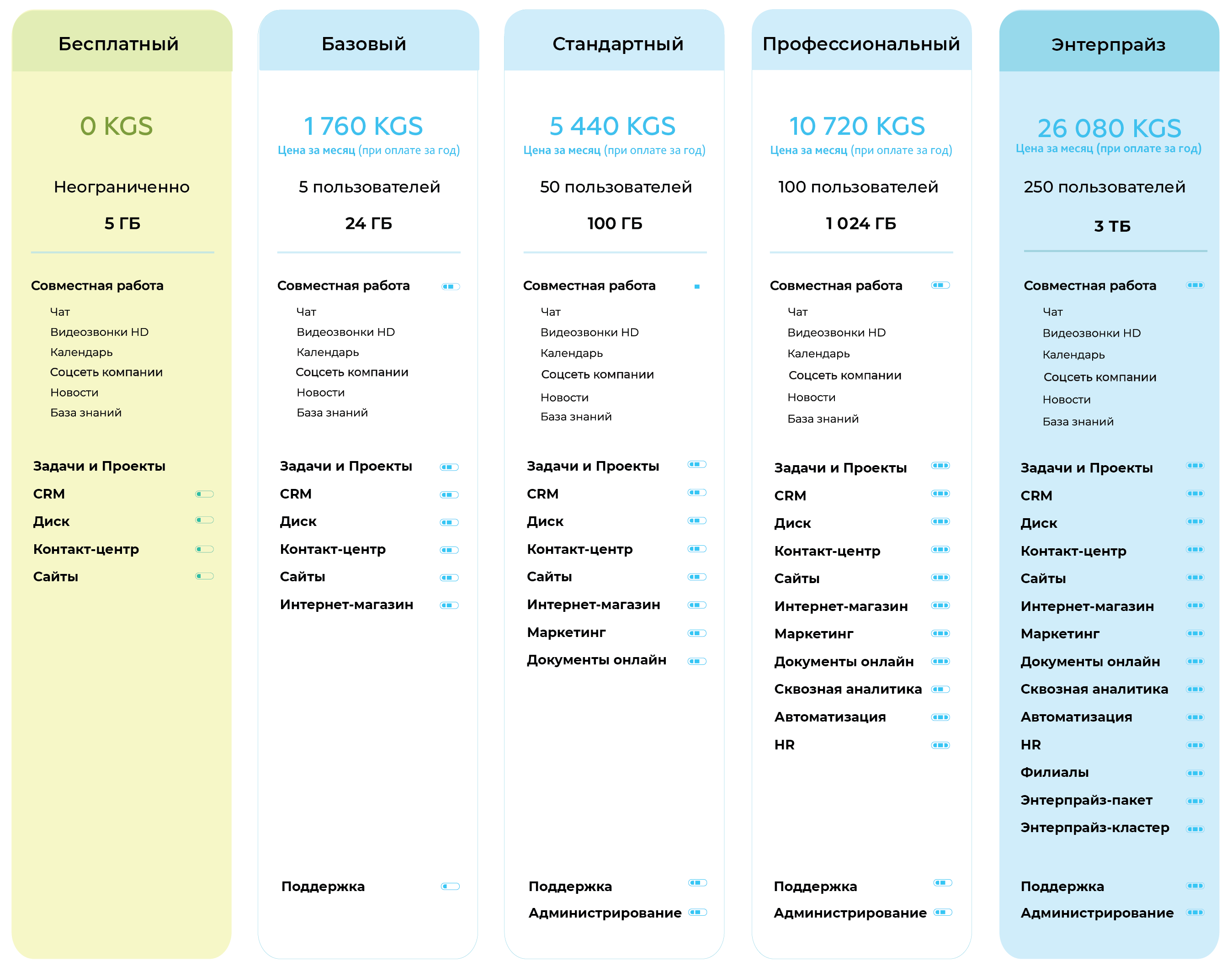 Чаты, видеозвонки, диск, календари и совместная работа в режиме реального времени.
